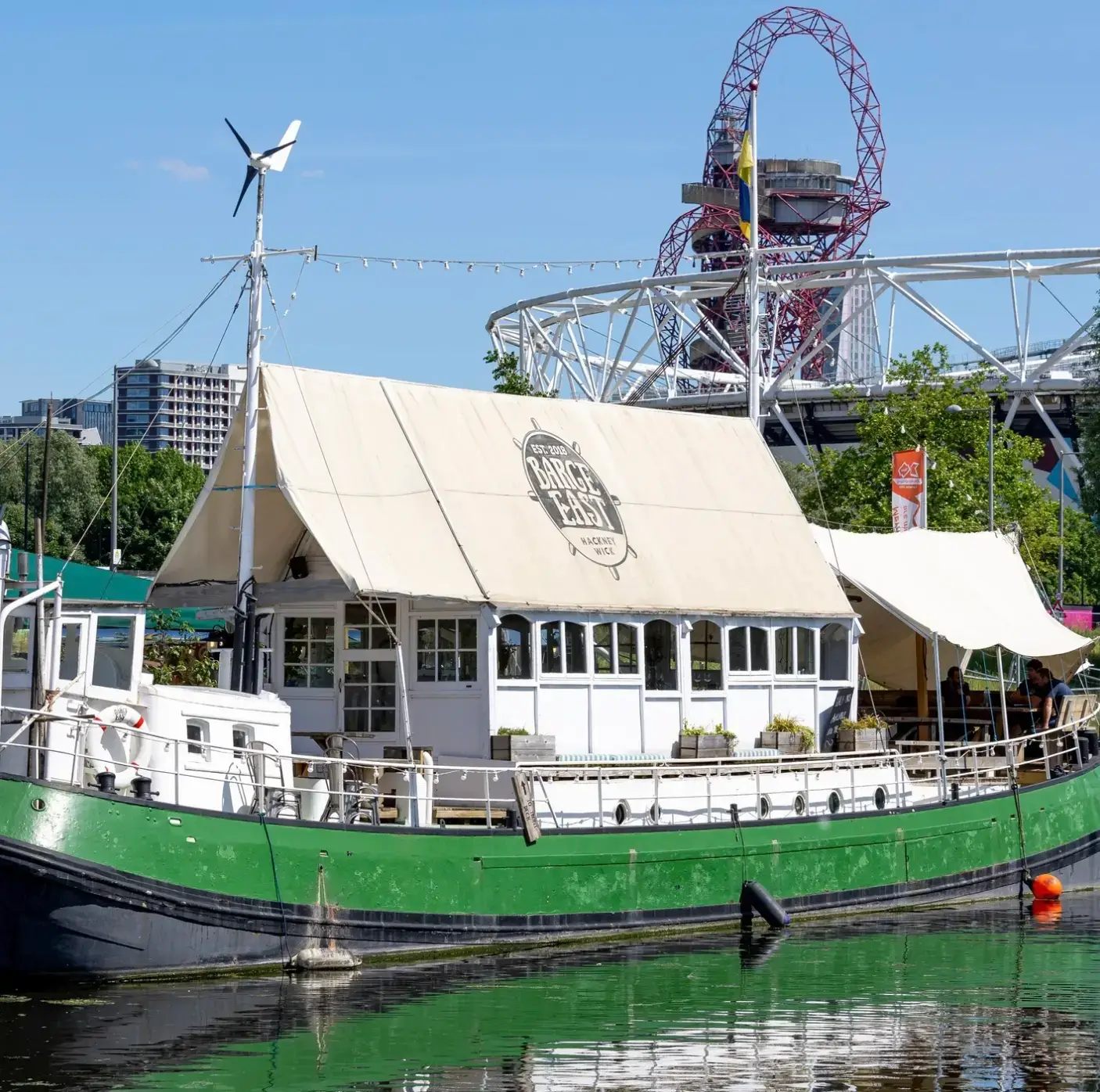 Barge East is an award-winning floating restaurant on the River Lee in Hackney Wick.