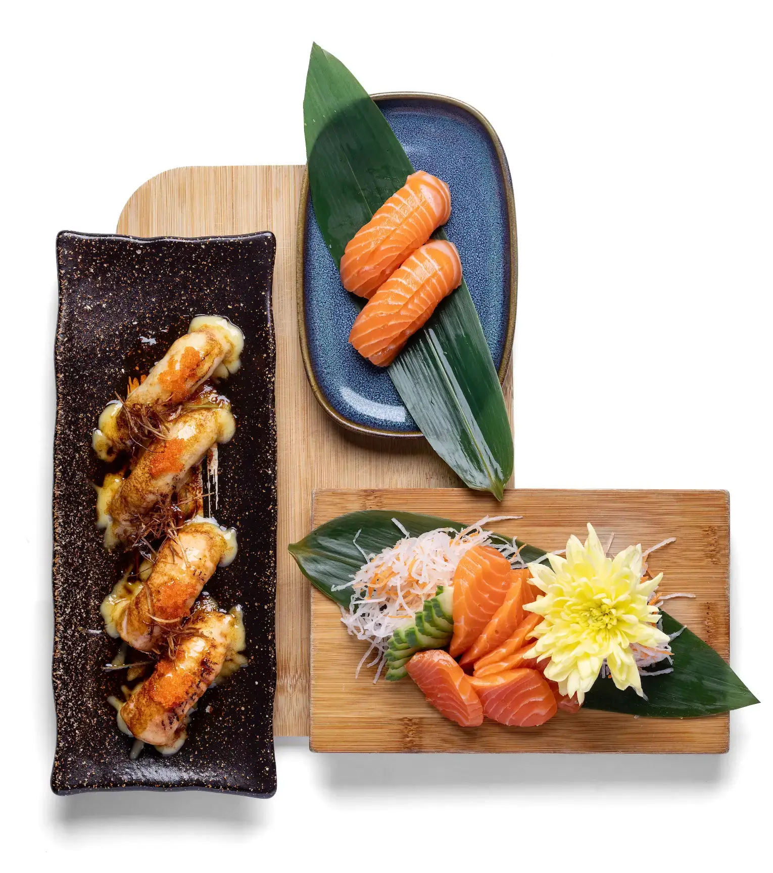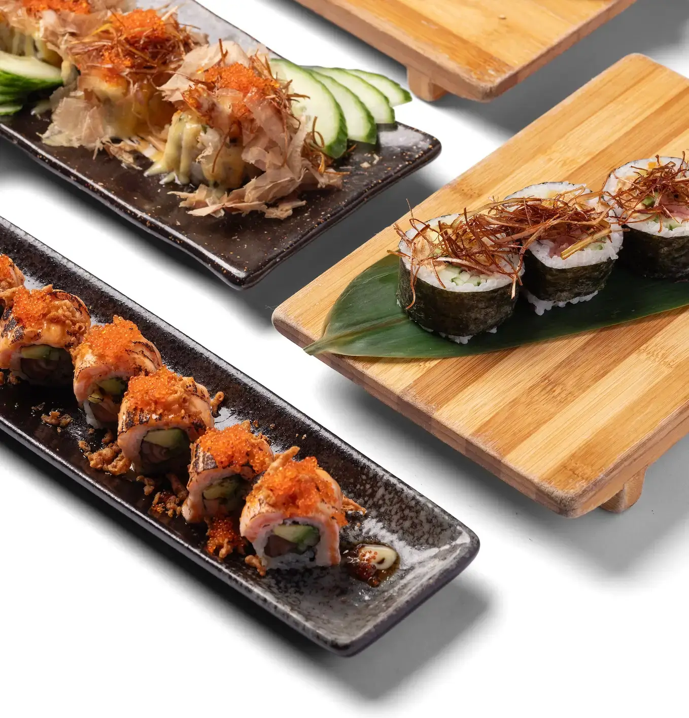 Begin your meal with small plates including Hanetsuki gyoza, Hirata buns and chicken yakitori, alongside expertly crafted sushi dishes such as dragon rolls, nigiri, sashimi and chicken katsu maki rolls.