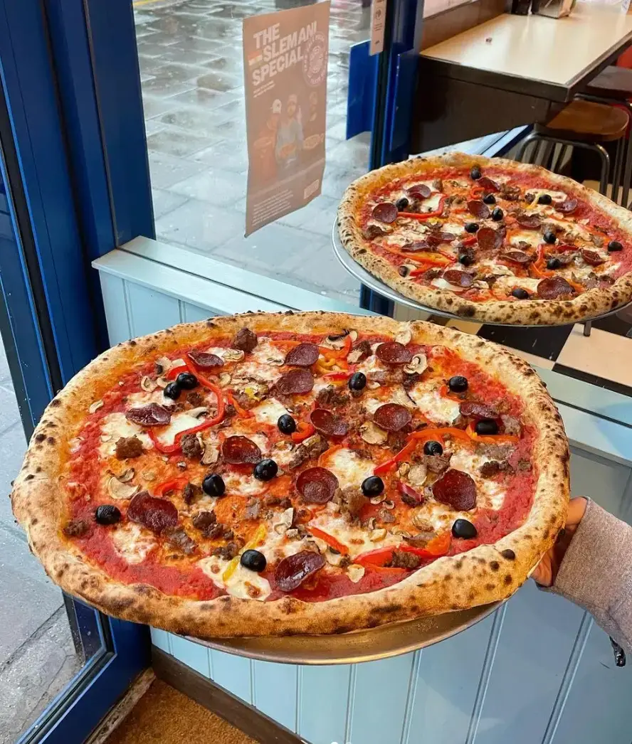 All their pizzas come with our slow-cooked tomato sauce and Fior di Latte mozzarella, unless otherwise stated. Their dough is vegan, and they have vegan cheese and gluten-free bases also available.