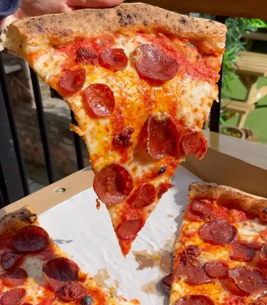 All their pizza is freshly handmade on-site and is the perfect combo of giant NYC-style pizza mixed with fluffy Neapolitan-style.