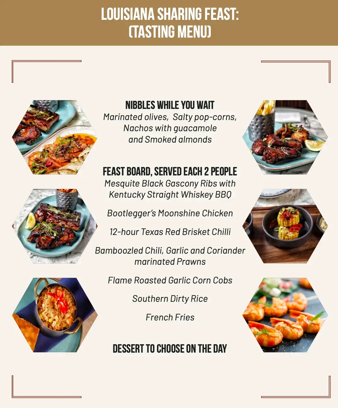 Their brand-new sharing feast menu showcases the very best of Americana's authentic Southern American cuisine. Included will be a selection of 12 different dishes to share - 4 nibbles, followed by 7 delicious small plates, then a dessert of your choice.