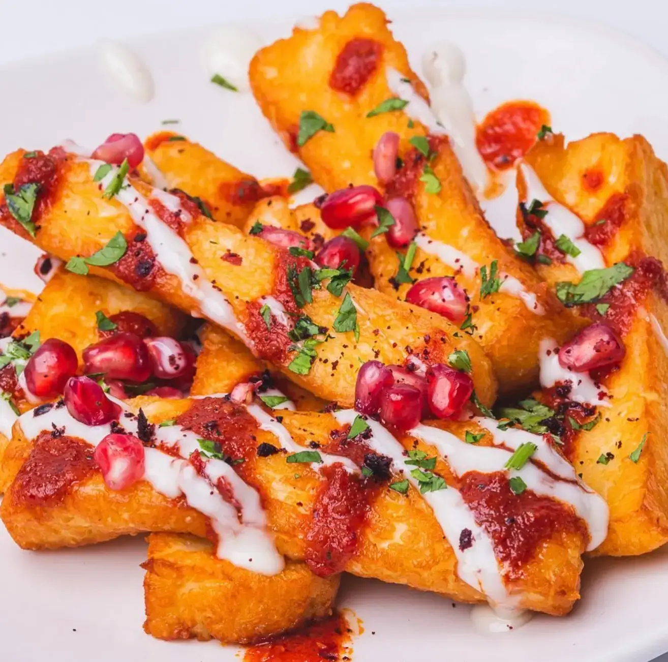 Crispy Halloumi - Harissa Sauce, Minted Yogurt & Crispy Onions