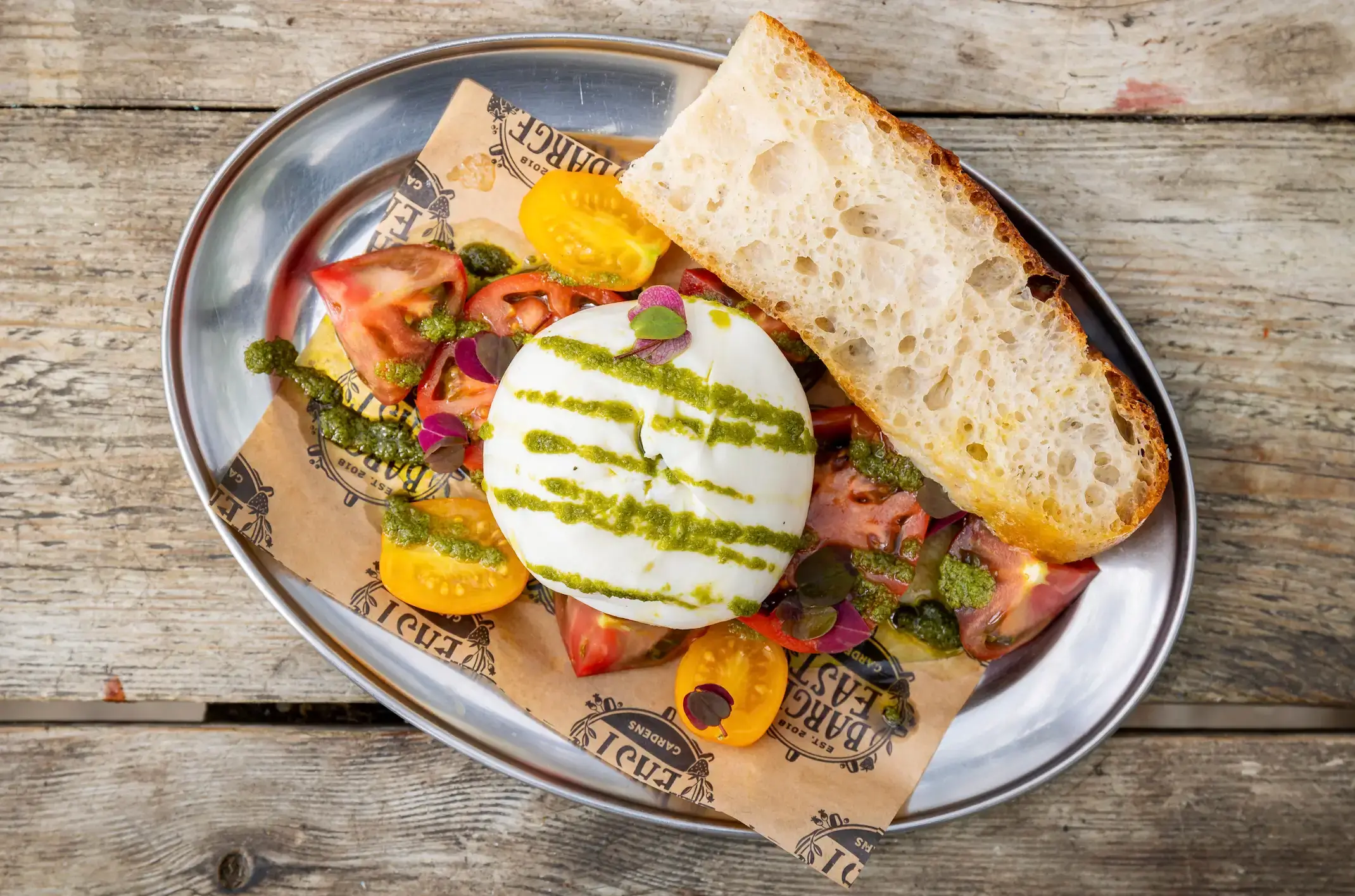 - Tomato Burrata (V) - Burrata, marinated heritage tomatoes, seasonal pesto