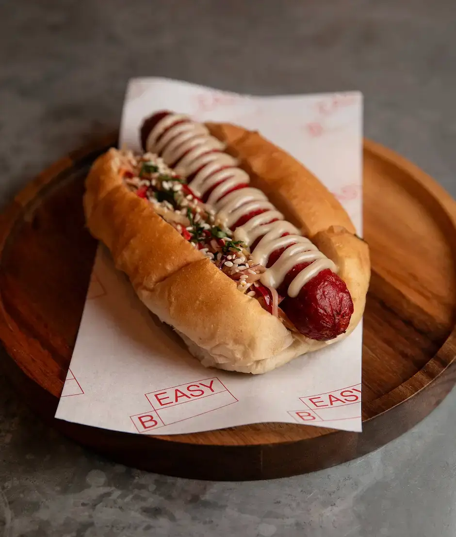 - Beasy Hot Dog - Beef sausage, Pickles, Iceberg, American Cheese, Grilled Onions, Burger Sauce