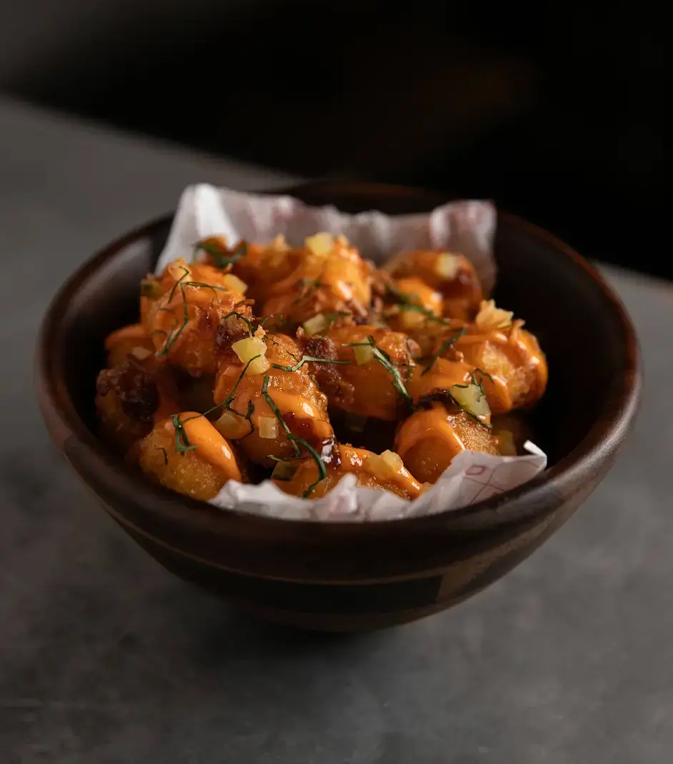 - Tater Tots - Gherkins, Crispy Onions, Caramelised Onions, Sriracha Sauce