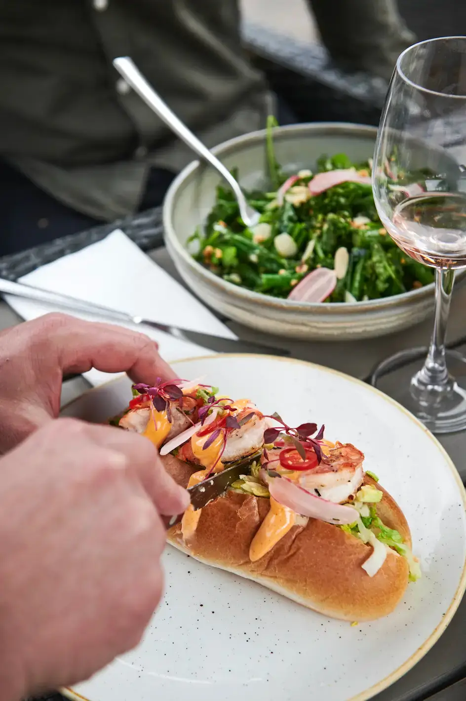Prawn Roll — Brioche, Marie Rose, baby gem, radish