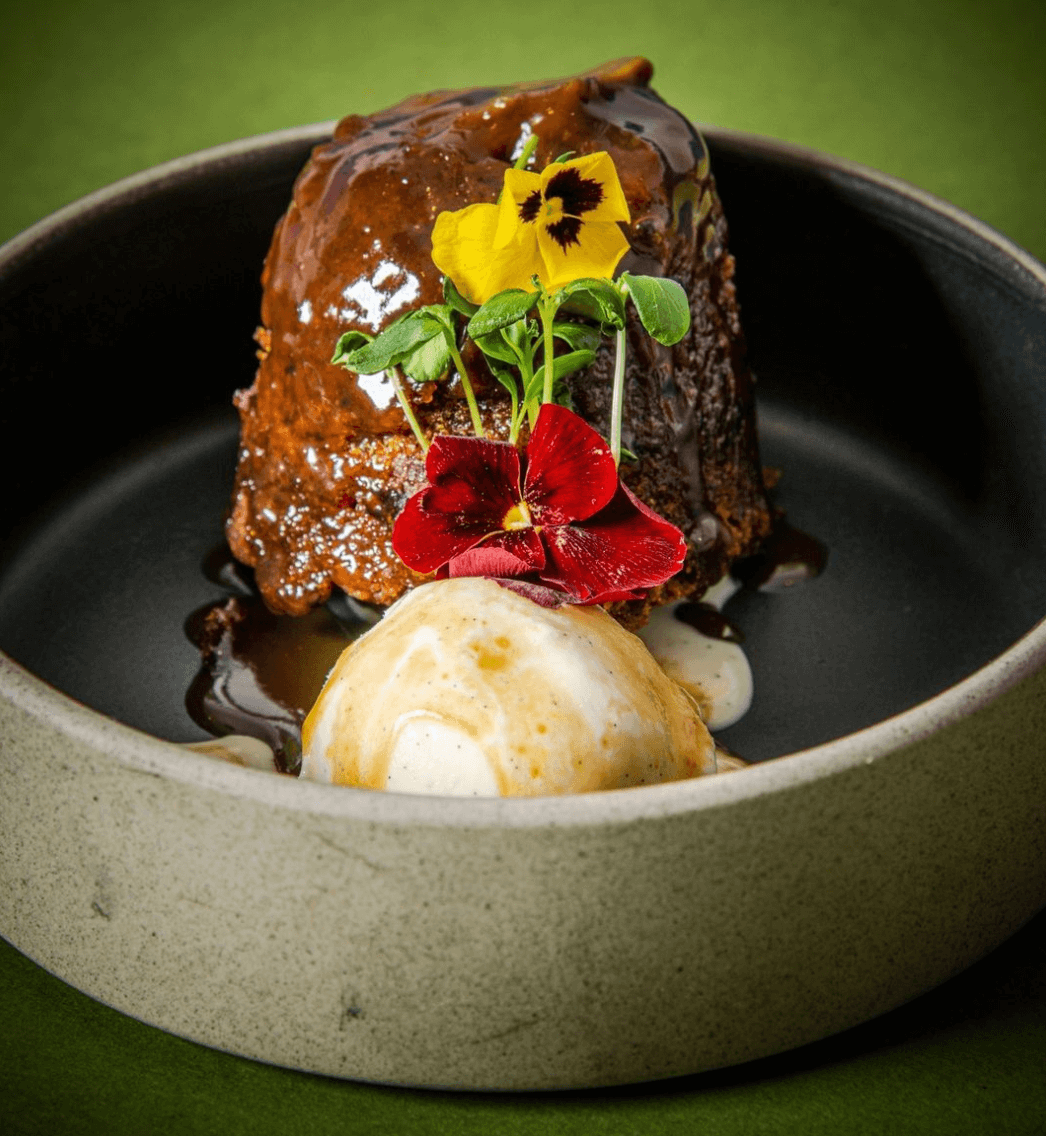 If you've got room for dessert, there are sweet treats such as cheesecake, plantain tarte tatin or sticky toffee pudding.