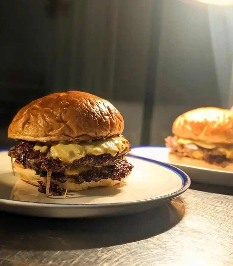On the menu, you'll find their classic smash burger, an oyster mushroom vegan burger, croquettes, seasonal house pickles, chocolate sorbet and a rotating seasonal sausage made in-house by Perry's butchers on the other side of Spitalfields market.
