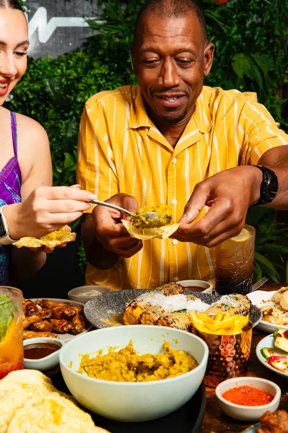 Other highlights include buttery roti, smoky jerk chicken, slow-cooked ribs, island catch with pepper chips, coconut curry peas, and beetroot orisotto with feta cheese.