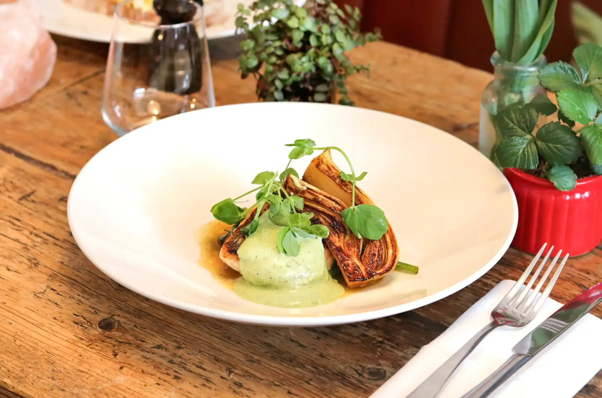 Begin your meal with starters such as smoked aubergine tart, home-cured salmon with horseradish cream, and beetroot with avocado mousse, feta & walnuts.