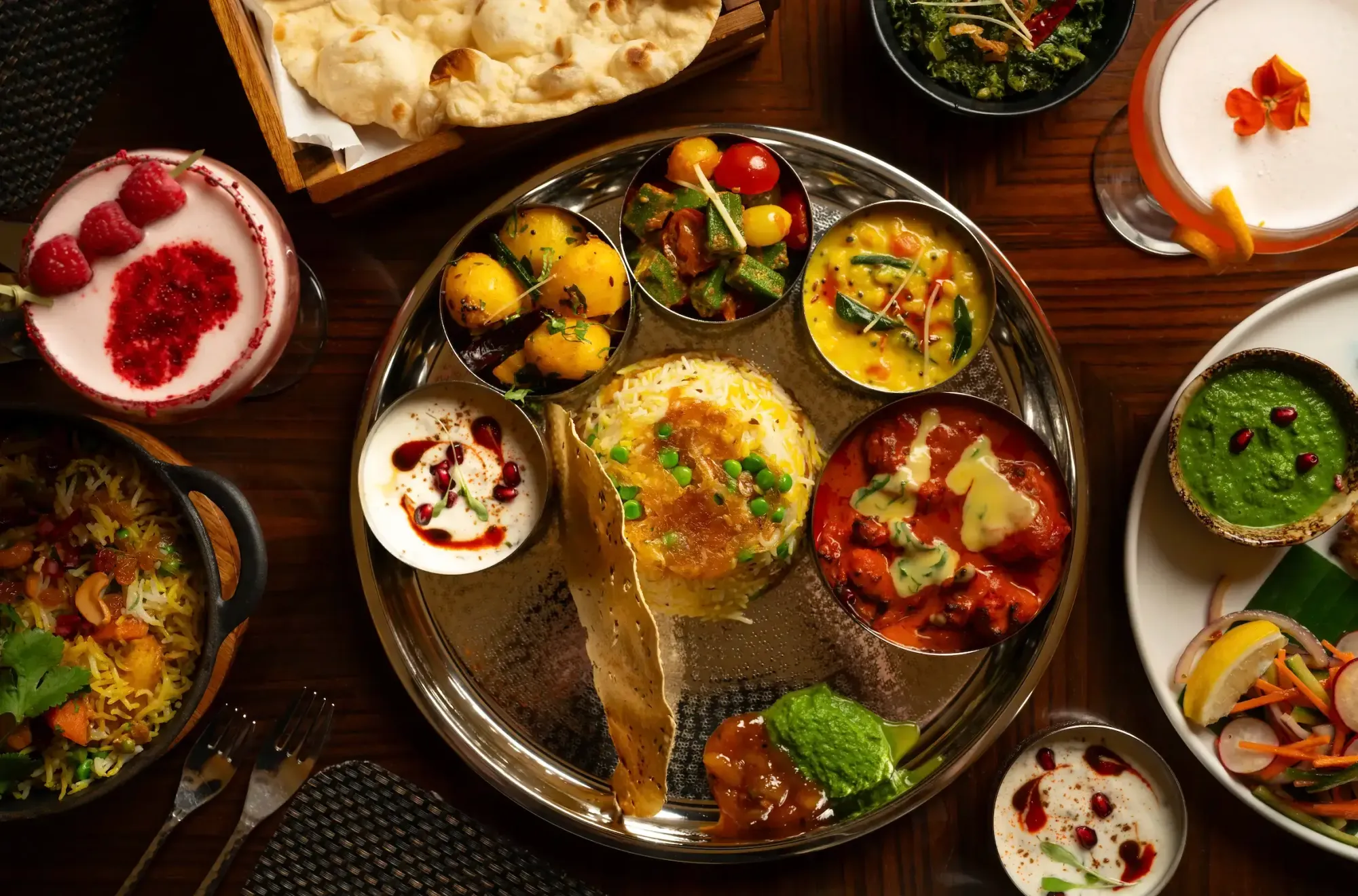 Larger plates include showstopping thalis, aromatic house biryanis, slow-cooked stews, marinated grilled meats & vegetables, plus a huge selection of mouth-watering regional curries.