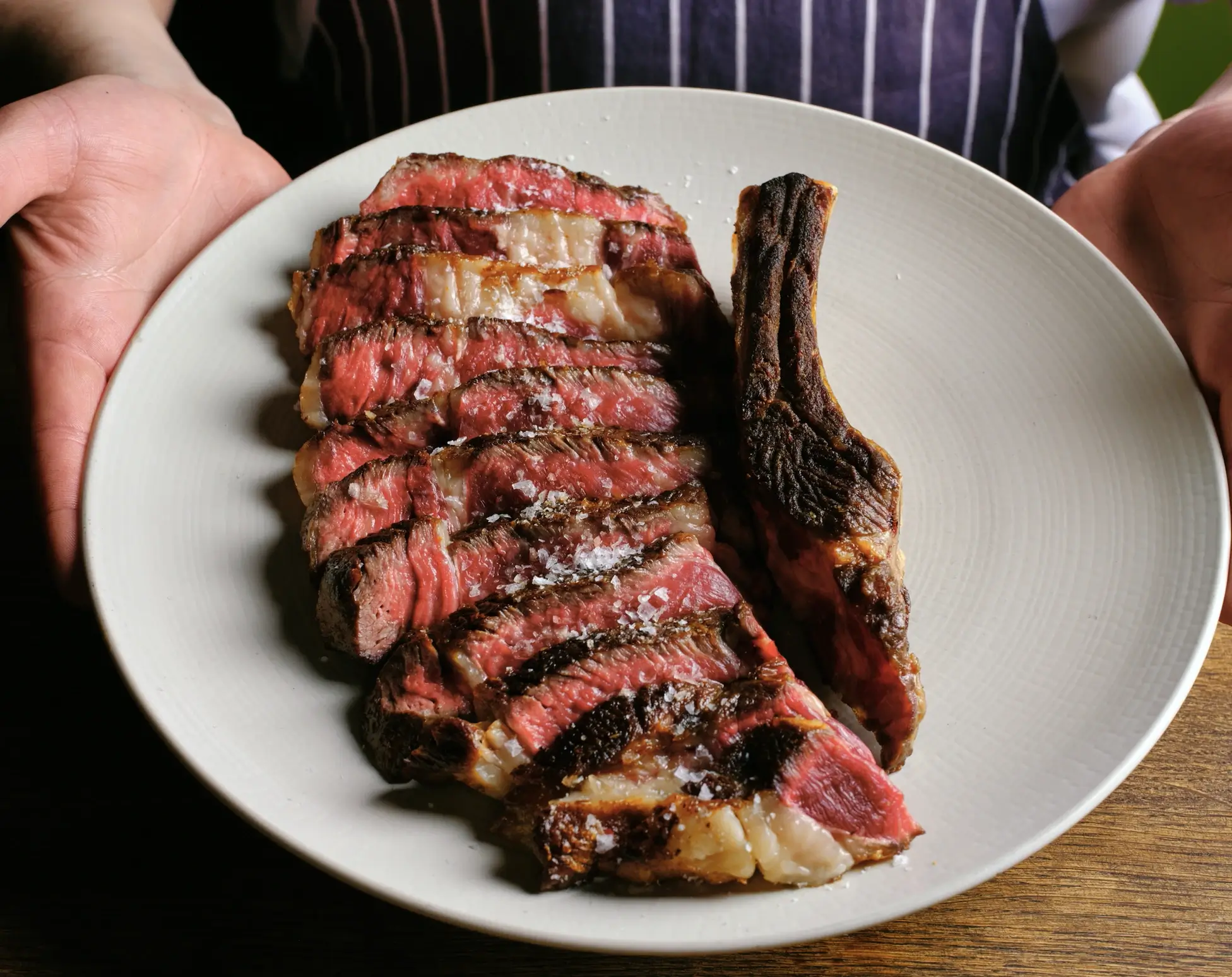 Their menu focuses on prime steak cuts and seasonal dishes cooked over charcoal, alongside a carefully curated wine list designed to complement their live-fire cooking.