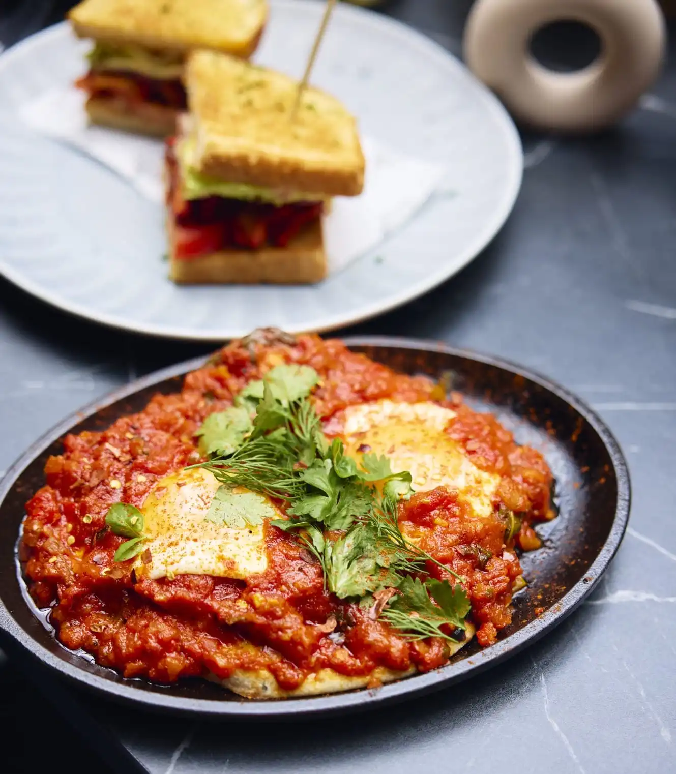 - Shick, Shack, Shock - Fried egg desi shakshouka & naan.
