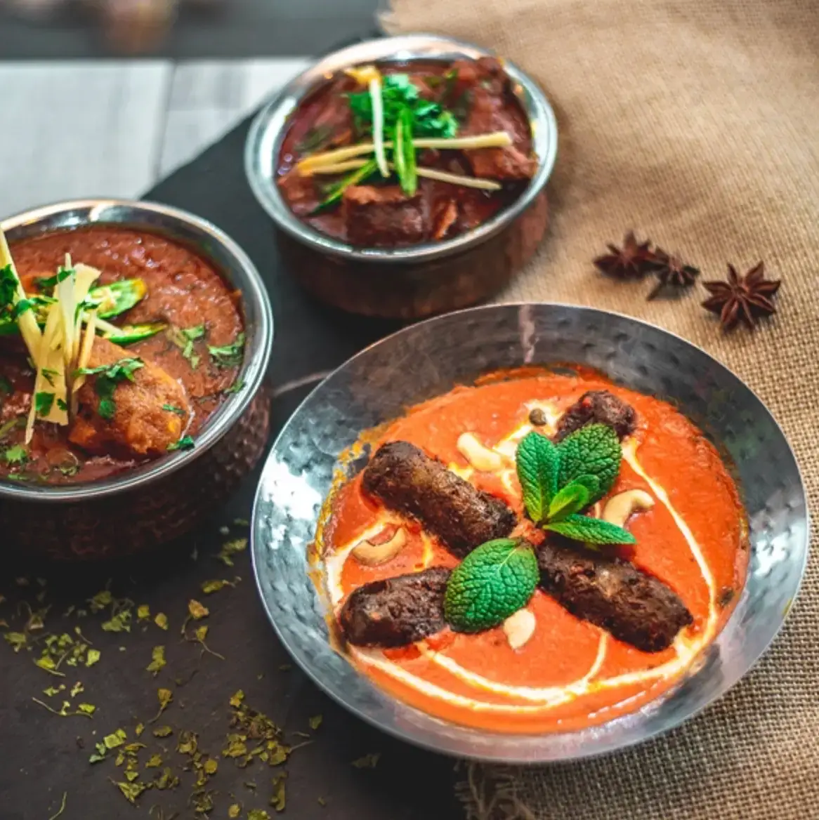 Next, you'll find a selection of mouthwatering dishes cooked over coals in Patri's clay tandoor oven, such as Tandoori Chicken Tikka, Paneer Tikka Khurchan, and Nawabi Seekh Kebab made with marinated triple-minced spring lamb.