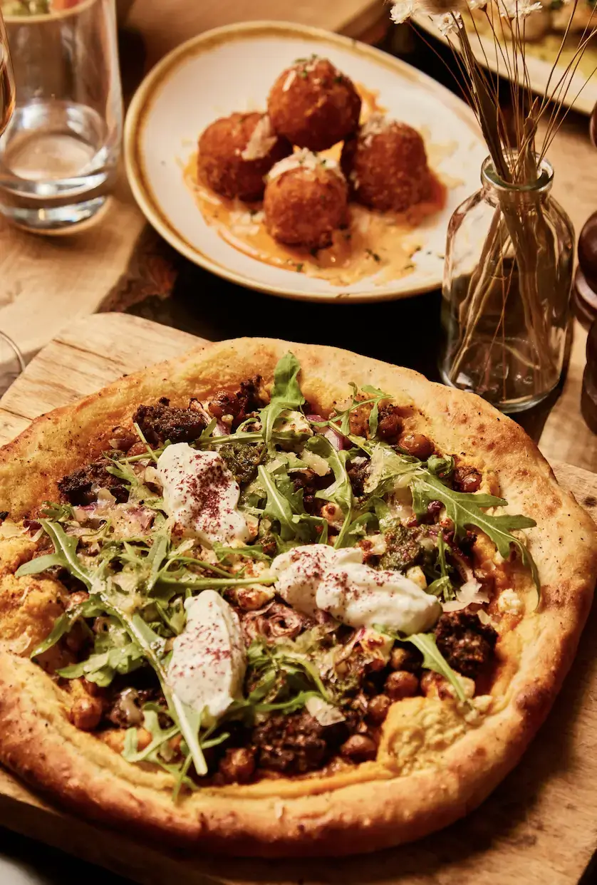 Begin your meal with small plates such as sweet potato & mozzarella croquettes, whipped green feta with pita, king prawns with garlic butter, chilli & sourdough, and burrata with hazelnut pesto & sundried tomato.
