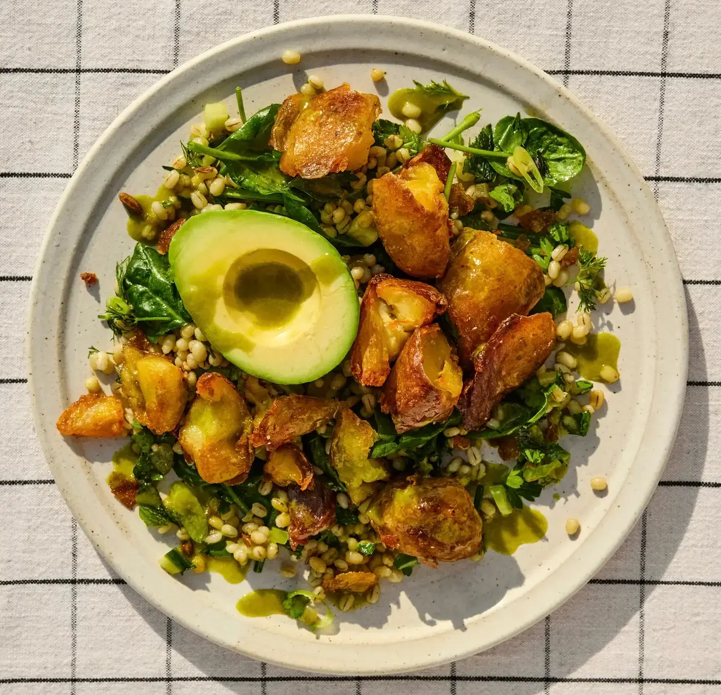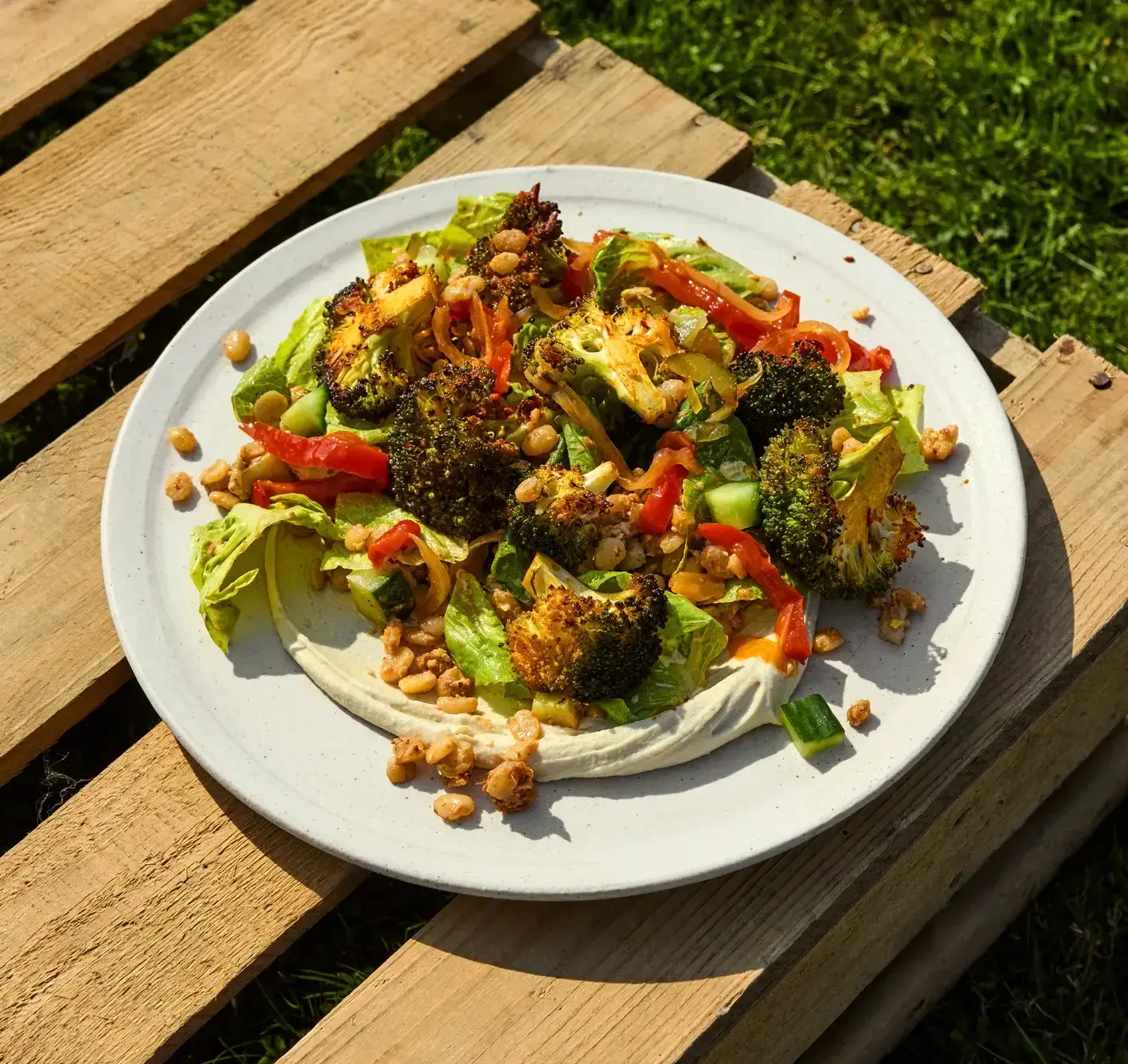 Next, add flavour with dressings including green harissa tahini, apple cider vinaigrette or honey mustard. Then finally, finish it off with "toppers" including glazed ham hock, slow-spiced lamb shoulder, chilli-crusted wild salmon fillet or za'atar cherry tomatoes.