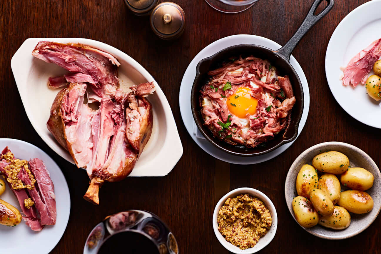 Here you'll find a carefully curated menu of wholesome British dishes, such as Cumberland sausage with bubble & squeak and caramelised onion gravy; free-range English chicken with a mushroom & tarragon cream sauce; roasted cod fillet with a warm tartare sauce; and a beef & bone marrow pie with shallots and a red wine sauce.
