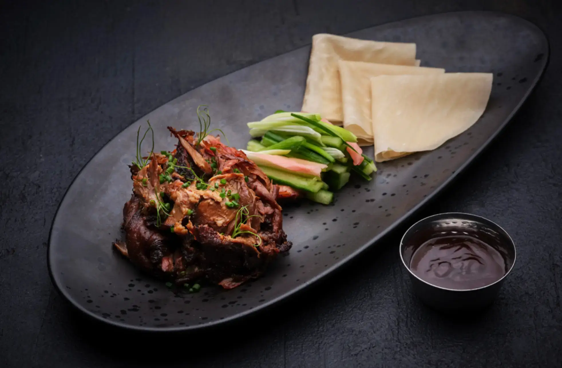 Begin your meal with tempting starters and small plates such as Desi chow mein spring rolls; black bean scallops; beef with wild mushroom bao buns; Szechuan crispy duck pancakes; and chilli pepper lamb.