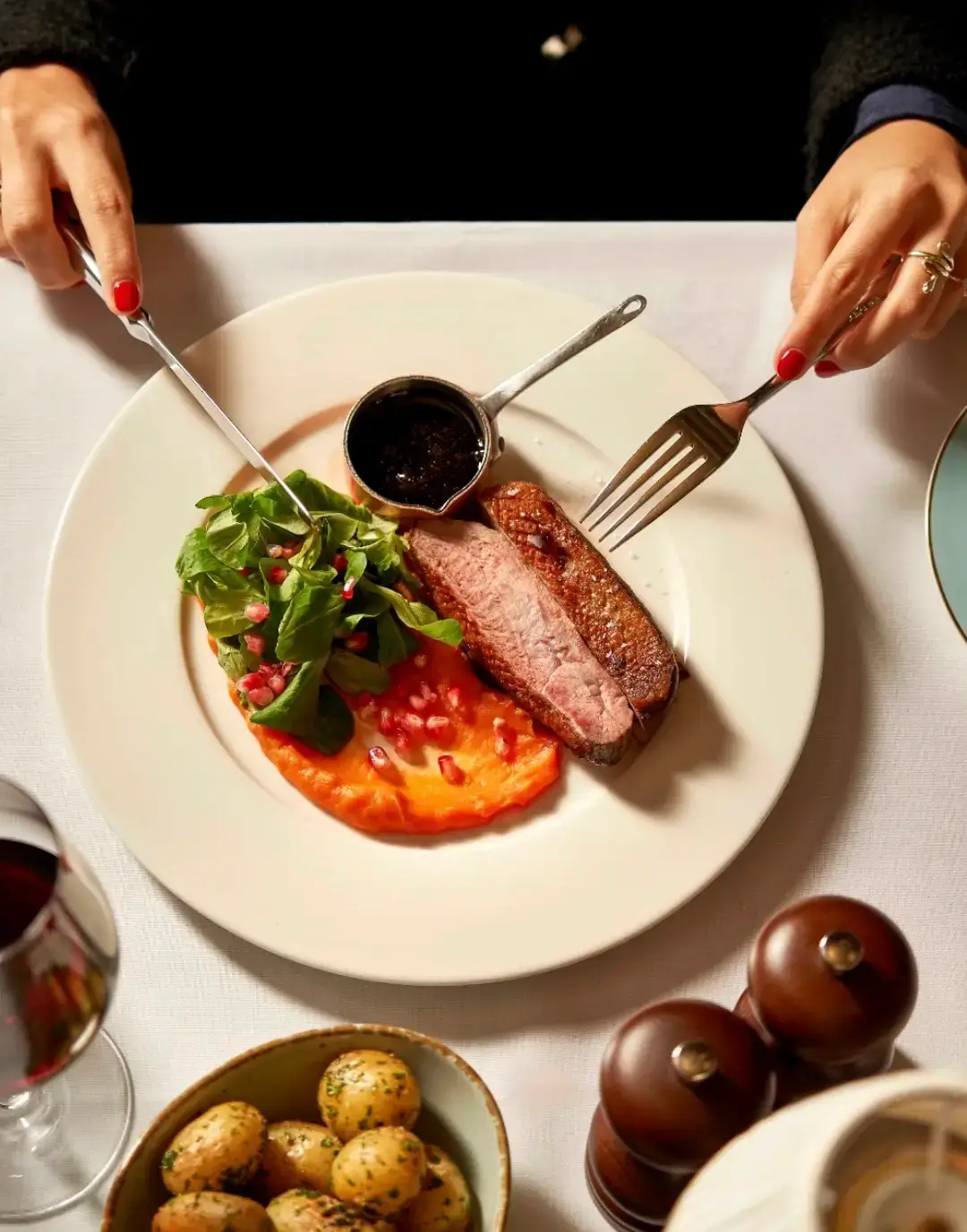 Begin your meal with starters such as beef carpaccio, dressed Dorset crab, ham hock terrine and grilled octopus.